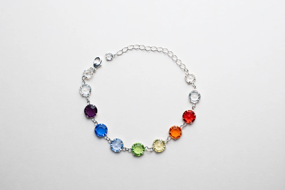 Ta bransoletka to nie tylko biżuteria – to opowieść o Twojej energii, zamknięta w tęczowym kręgu kryształów. Siedem barwnych kamieni, inspirowanych kolorami czakr, tworzy energetyczny rytm, który wspiera balans między ciałem, umysłem i duszą. Ich różnorodne kształty – niektóre płaskie, inne stożkowe – przypominają, że każda wibracja ma swój własny wyraz. Bransoletka rozpoczyna się i kończy przezroczystym kryształem – jak brama światła, która prowadzi do Twojego wnętrza. To talizman dla tych, którzy chcą świadomie podążać swoją ścieżką – z lekkością, klarownością i mocą.