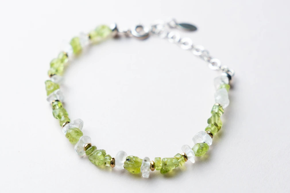 Energetyczna i pełna życia – ta bransoletka została stworzona z myślą o osobach, które chcą przebudzić się do nowej energii i pełni swojego potencjału. Połączenie jasnego oliwinu, czystego kryształu górskiego i stabilizującego hematytu przywołuje lekkość, klarowność i poczucie mocy zakorzenionej w naturze.