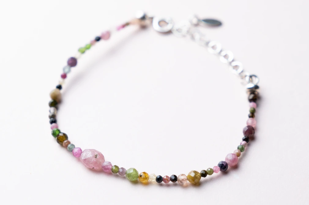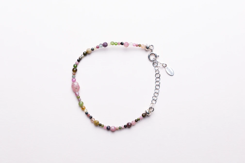 Ta subtelna, a zarazem pełna mocy bransoletka wykonana została z wielobarwnego turmalinu – kamienia, który symbolizuje miłość, wewnętrzną siłę i ochronę. Każdy egzemplarz posiada w centrum jeden większy kamień turmalinu, wybierany intuicyjnie i losowo – dlatego każda bransoletka ma swój wyjątkowy charakter, dopasowany energetycznie do przyszłej właścicielki.