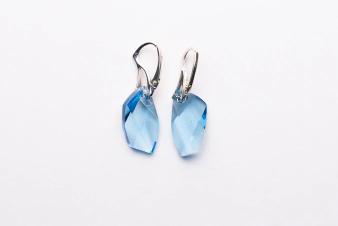 Kolczyki „Łza Nieba” z błękitnego kryształu i srebra 925 – talizman spokoju, łagodności i jasnej intuicji.