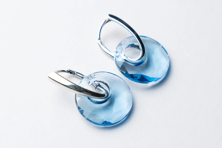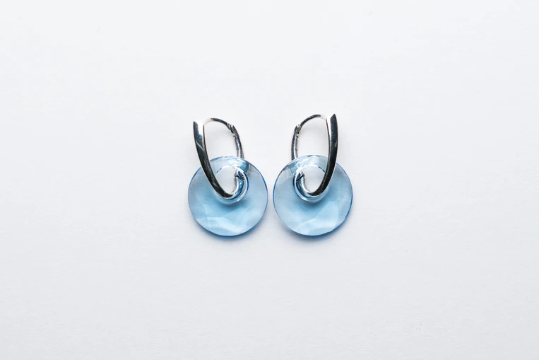 Kolczyki „Niebiańska Aura” to błękitne kryształki w srebrnym wykończeniu. Lekka forma, która przynosi ukojenie, jasność i elegancję.