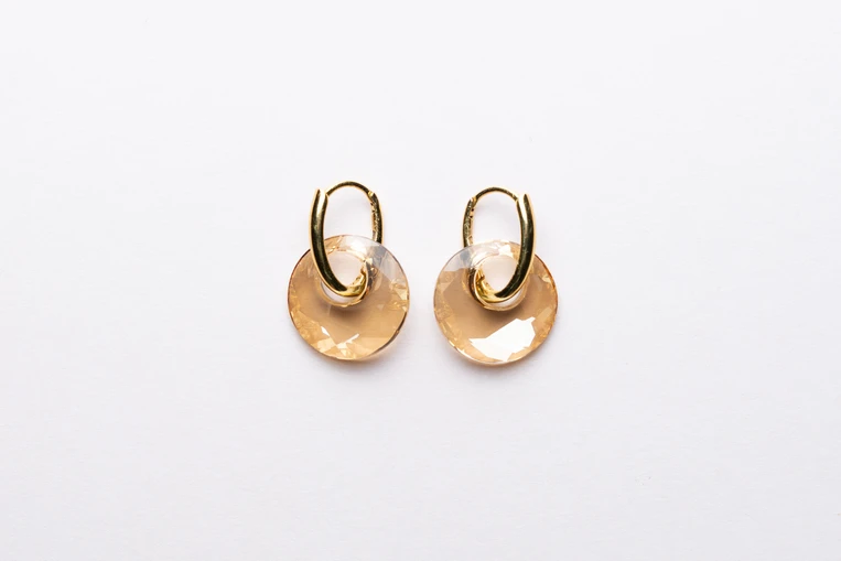 Kolczyki „Złota Aura” to połączenie kryształowego blasku i złotego wykończenia. Subtelna forma, która emanuje wewnętrzną siłą i przyciąga światło.