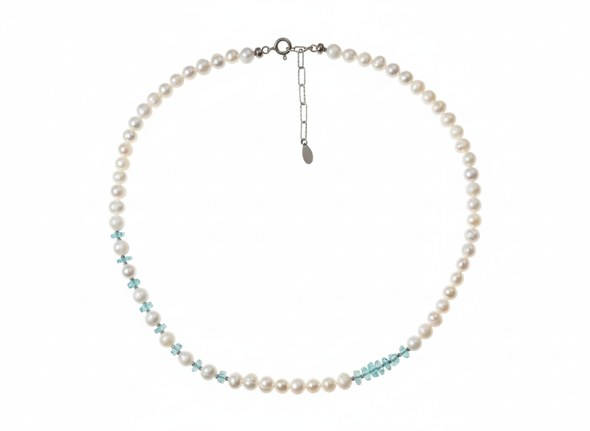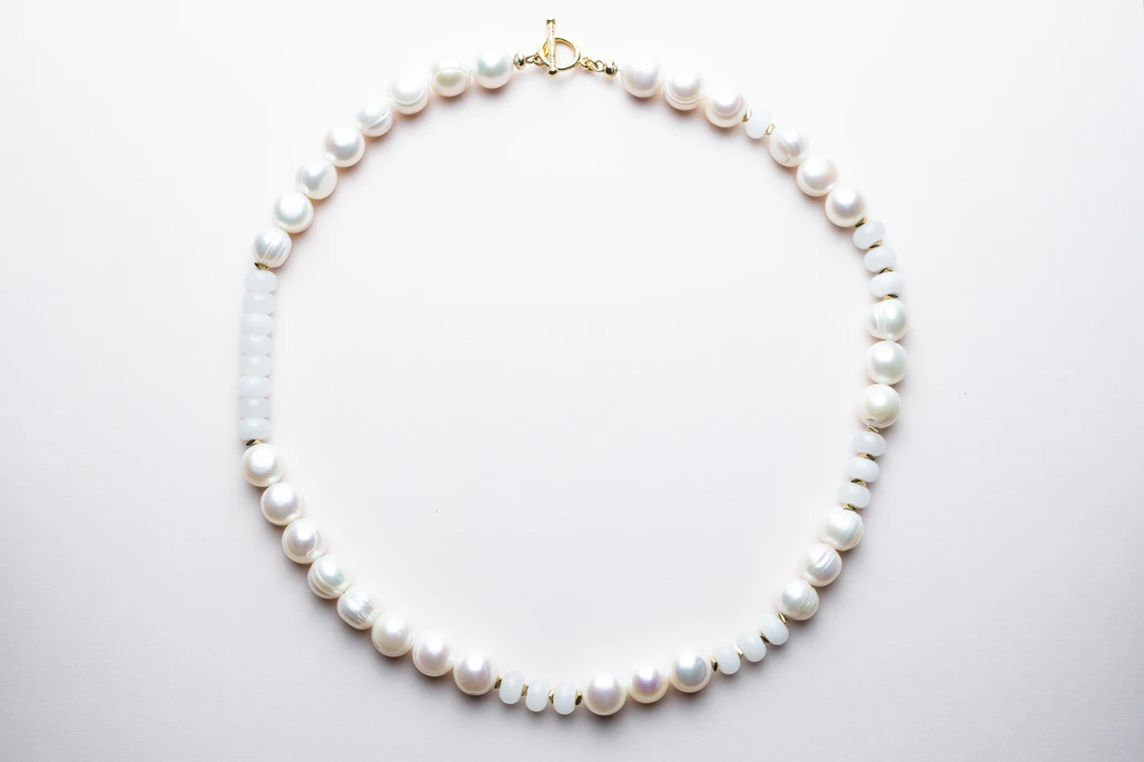 Ten elegancki naszyjnik łączy w sobie blask klasycznej perły, czystość białego kwarcu oraz ochronną energię hematytu. Jego subtelna, świetlista forma przypomina spokojny oddech – jakby zatrzymany moment ciszy, w którym można usłyszeć siebie naprawdę.