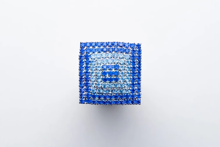 „Niebieski Portal” to nie tylko biżuteria – to symbol otwarcia na nowe spojrzenie, przenikliwości i kontaktu z intuicją. Hipnotyzujący układ błękitnych i niebieskich kryształków układa się w geometryczną formę przypominającą bramę do głębszego poznania – siebie, innych i świata. To pierścionek dla tych, którzy chcą świadomie kroczyć własną ścieżką – z odwagą i klarownością.