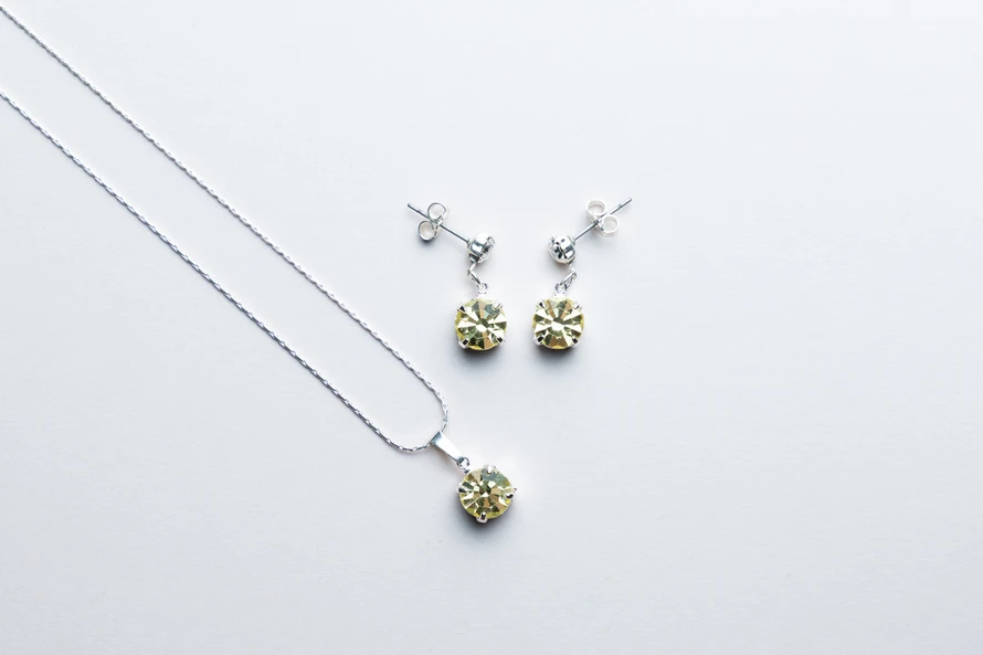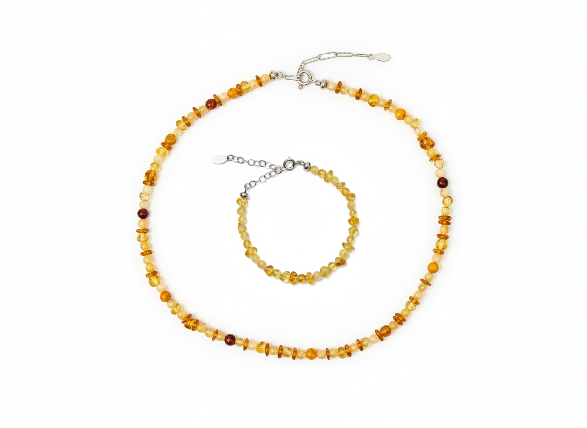 Zestaw składa się z naszyjnika i kolczyków w tym samym odcieniu – tak, by całość tworzyła spójny, świetlisty duet. Cena dotyczy jednego wybranego zestawu w konkretnym kolorze.